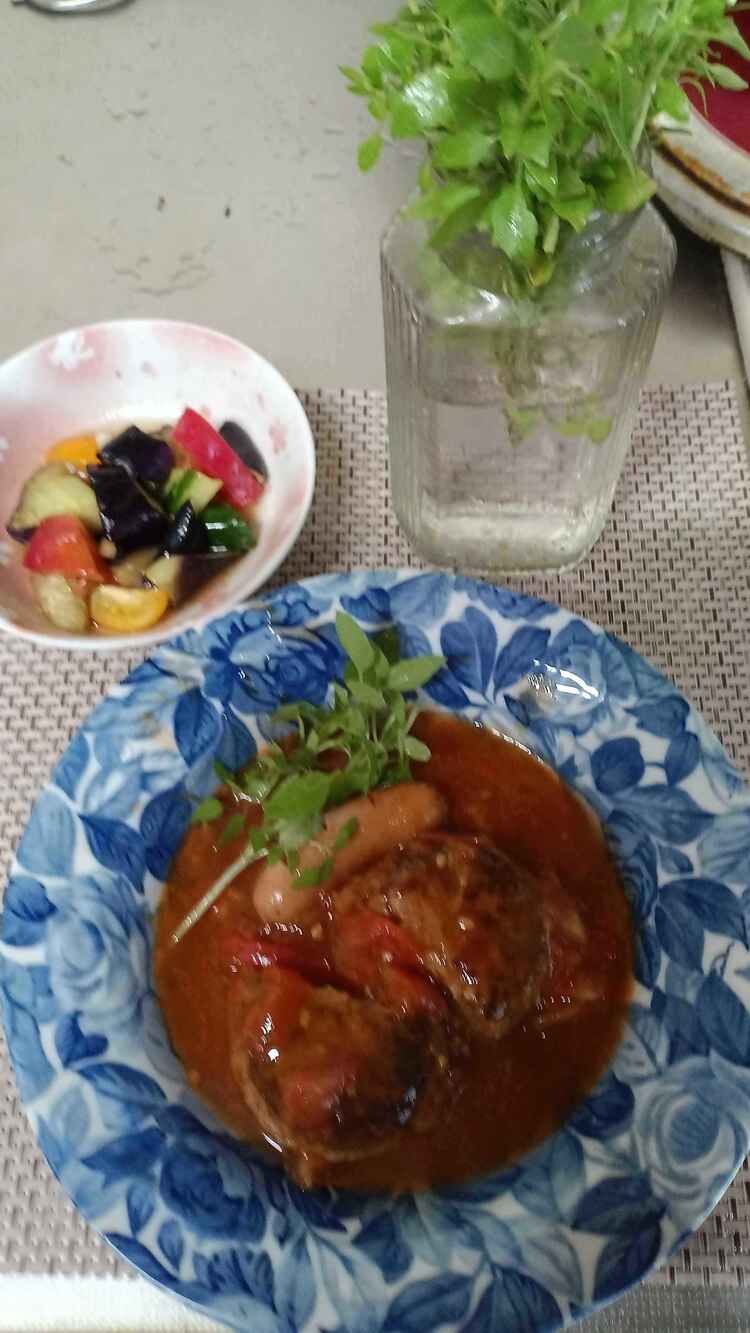 ハーブや副菜の夏野菜、お皿がとっても夏らしいですね!